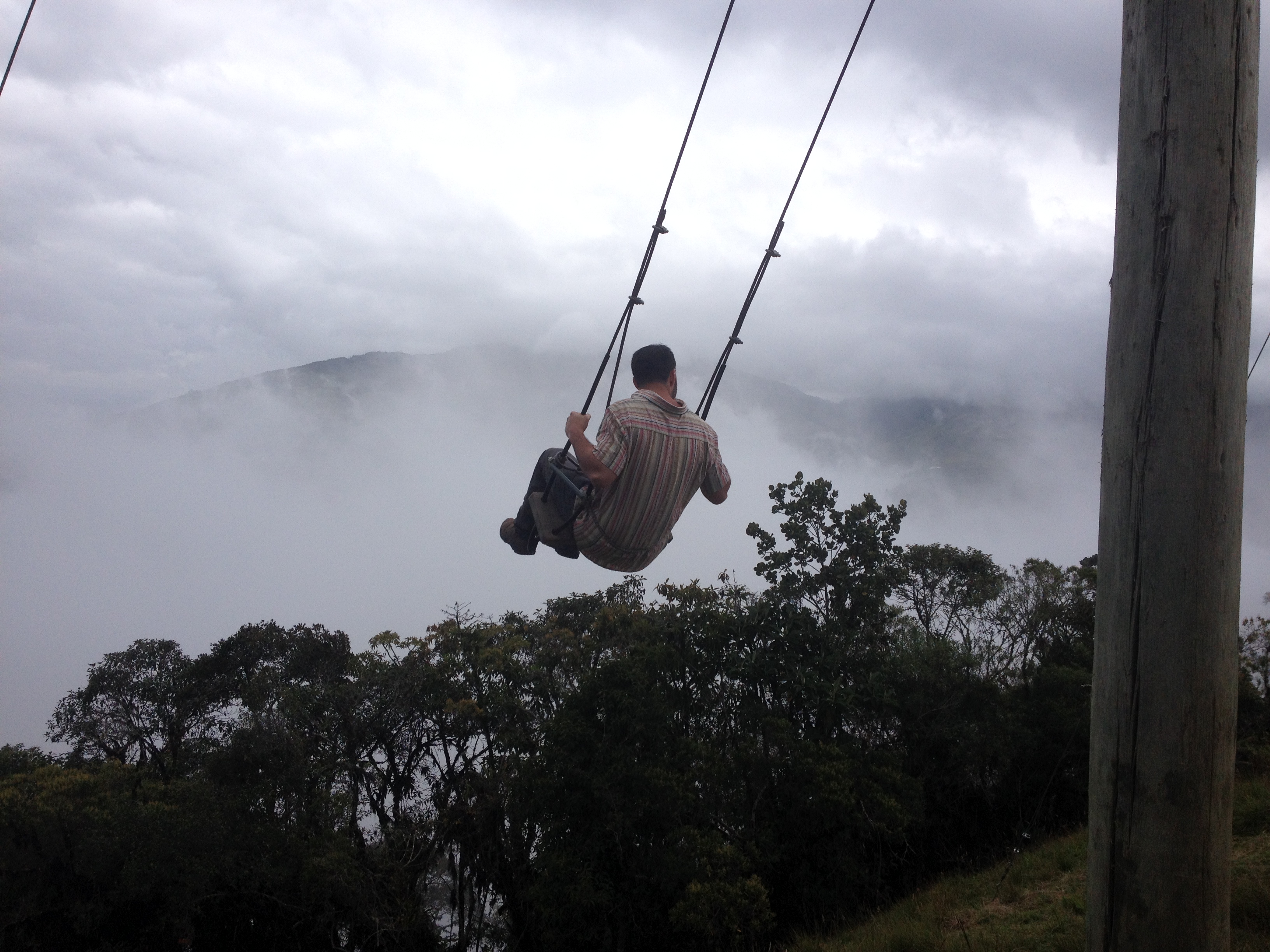 Also make sure you check out the swing at the end of the world, or Casa de Arbol. It is basically a tree house swing at the edge of a mountain above the city of Baños Ecuador. It is a really great place to overlook the surrounding mountains and serene landscape. When the clouds set in, it really looks like you are swinging at the end of the world too.