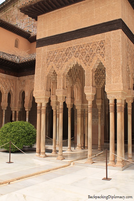 When one walks through the Alhambra, you will notice the many different influences from the different periods when rulers added on. The Moor fortress still stands, but it is only the beginning of the grounds. There is also a Spanish palace there. And of course the most famous area where the Arabian palace is complete with hamams, places for worship, and excerpts from the Quran, the Alhambra has all the features of a true Arabian palace.