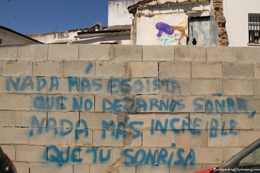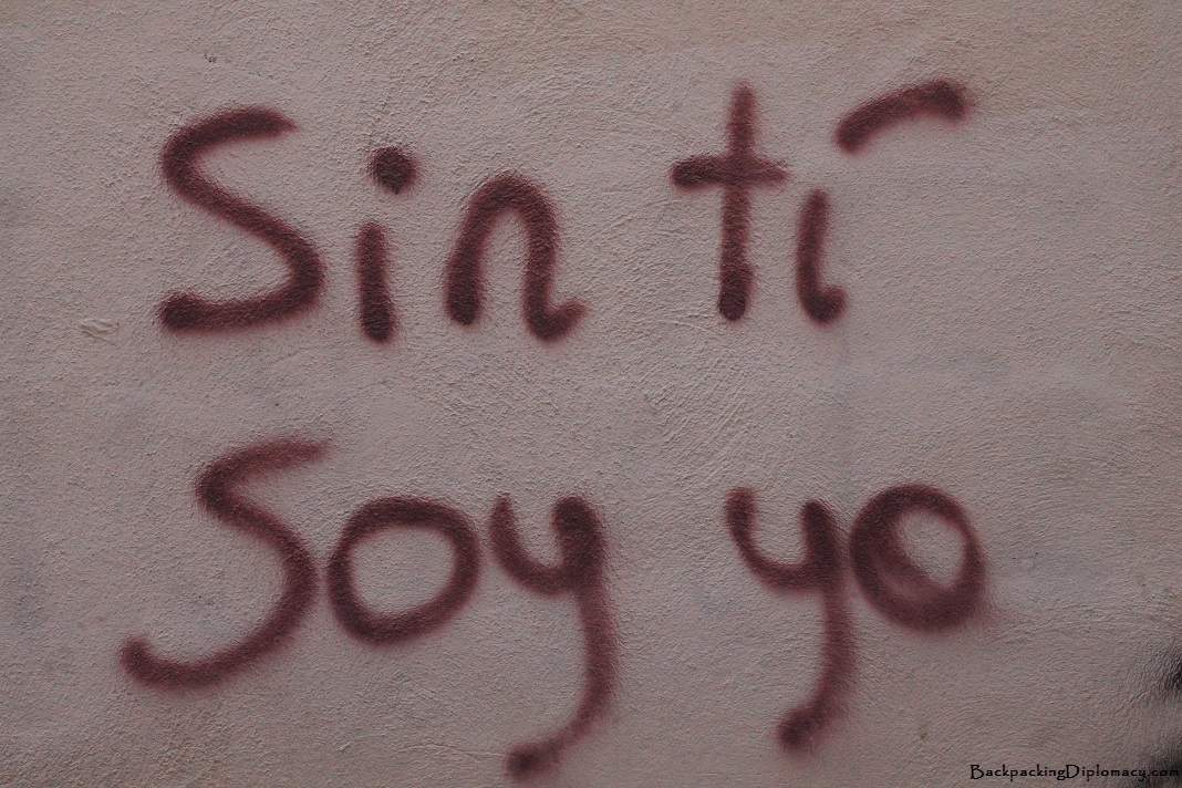 When I was traveling through Córdoba recently, I came upon a street where many different people had left their expressions of love in writing. I was able to take pictures of some of the ones that stood out to me the most so I thought that I would share them with you. Below you will find some of my favorites as well as my thoughts on what they translate into.