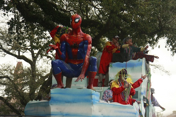 Parades are the actual practice of Mardi Gras. This is when a large decorated truck, called a float, drives down the road on a specific route. During a parade, people line the streets and collect colorful beads and goodies thrown by the crew aboard these floats. Parades typically have a theme, which is a basis for the decoration of the floats. The people aboard the floats are called the crew (spelt krewe in this case). These people are part of the societies or clubs, which annually host the parades. For example, you have a Krewe of Bonaparte, Krewe of Gabriel, et cetera. There are many different Krewes in Louisiana.