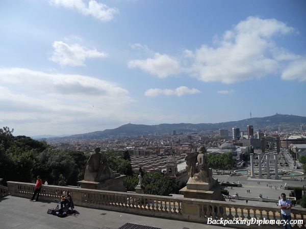 Overlooking part of the city from the art museum at Montjüic. A beautiful place to sit and have lunch.